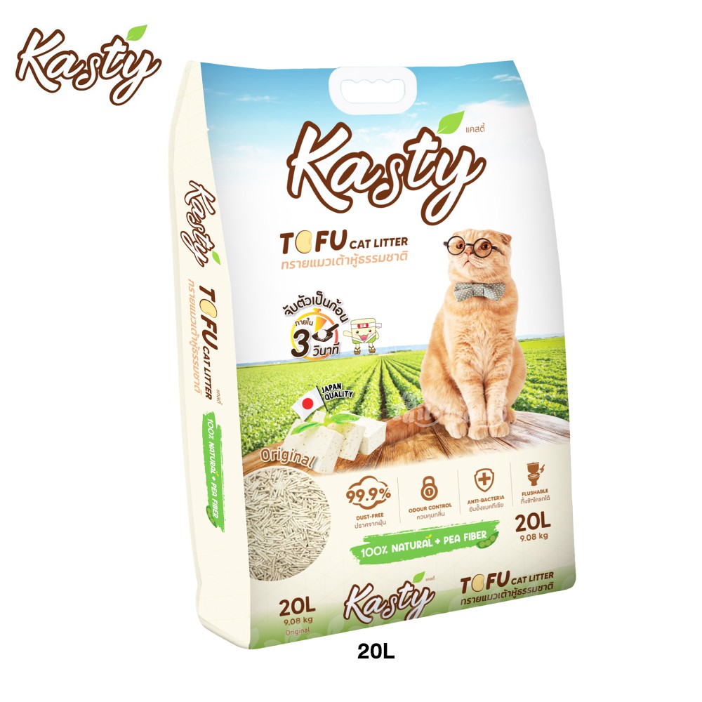 Kasty แคสตี้ ทรายเต้าหู้ ถั่วลันเตา ทรายแมวเต้าหู้ธรรมชาติ 100% จับตัวเป็นก้อนไวใน 3 วินาที เก็บกลิ่น ทิ้งชักโครกได้
