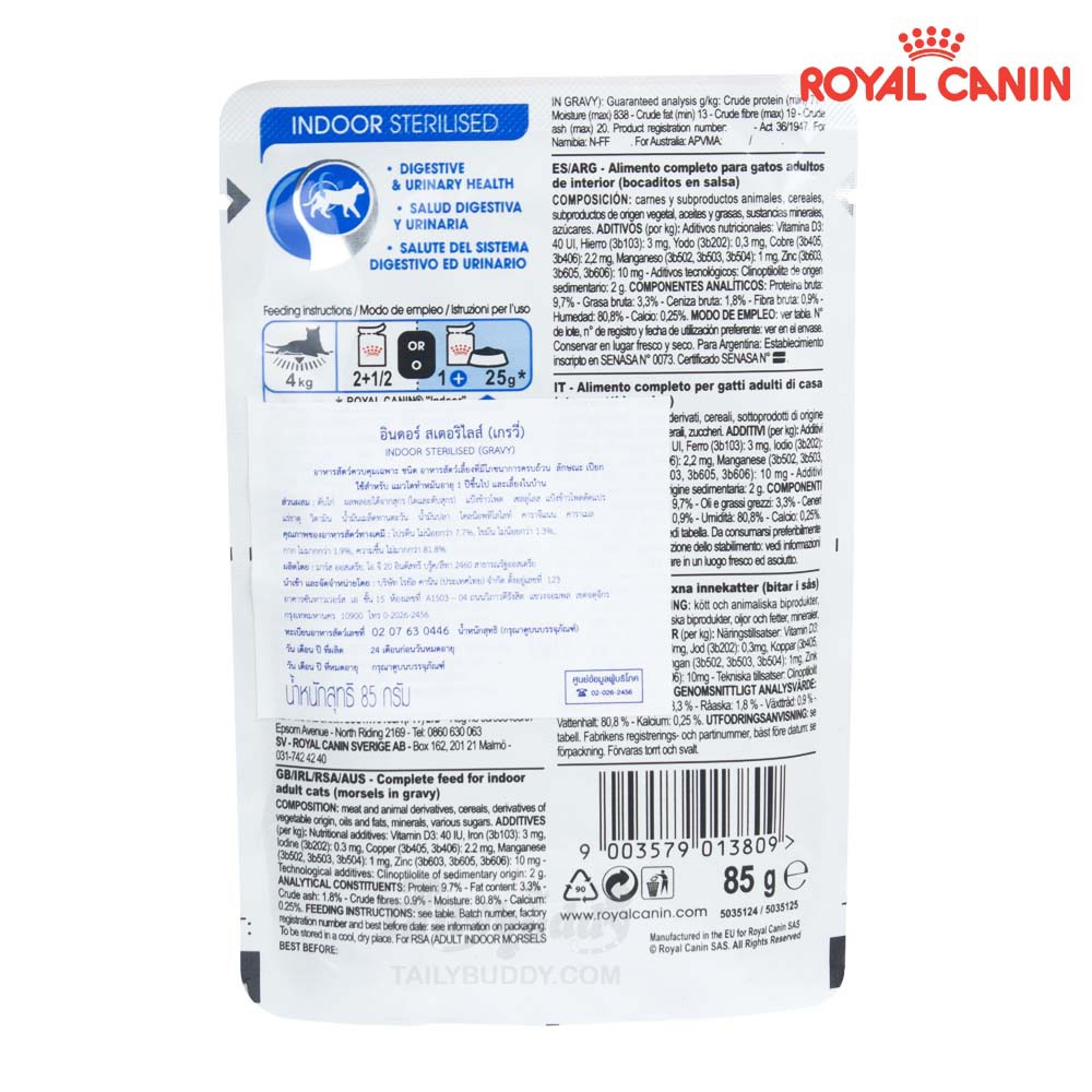 1 ซอง - Royal Canin Indoor Sterilised Gravy อาหารเปียกแมวในน้ำเกรวี่ สูตรแมวเลี้ยงในบ้าน (85g)
