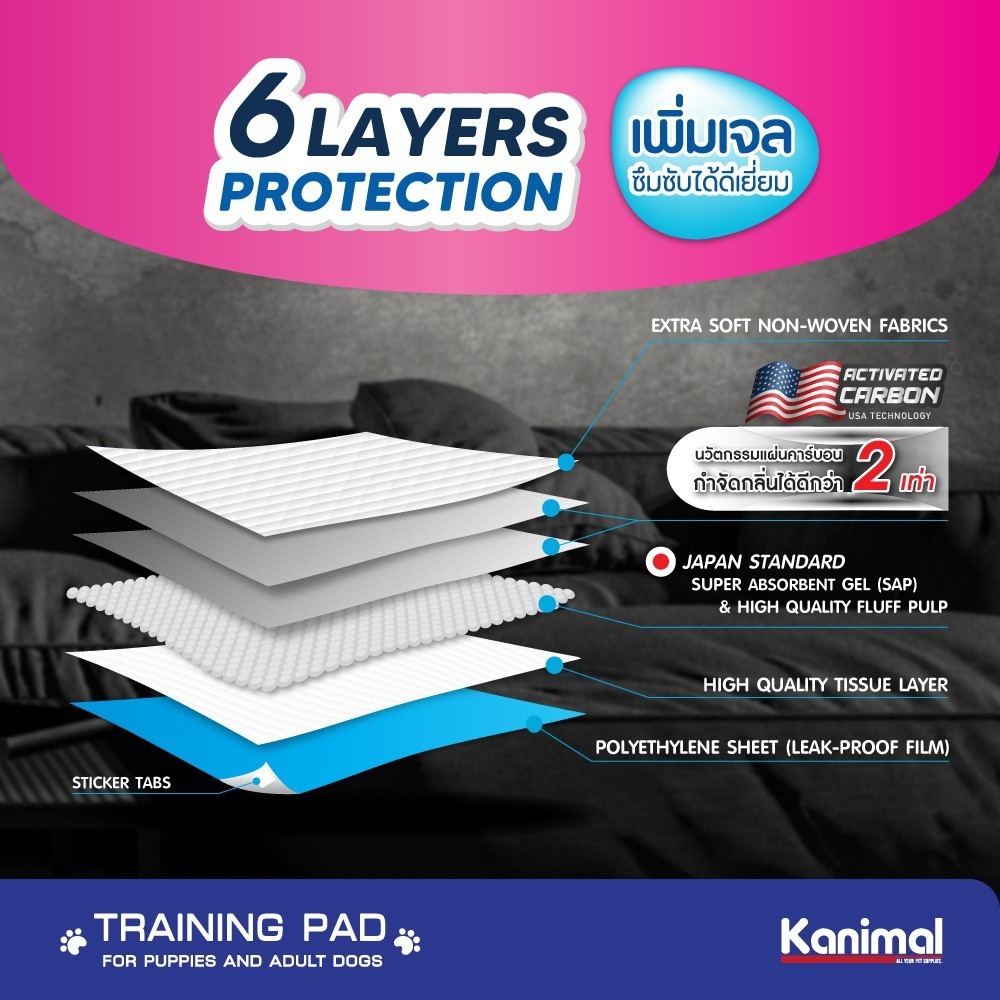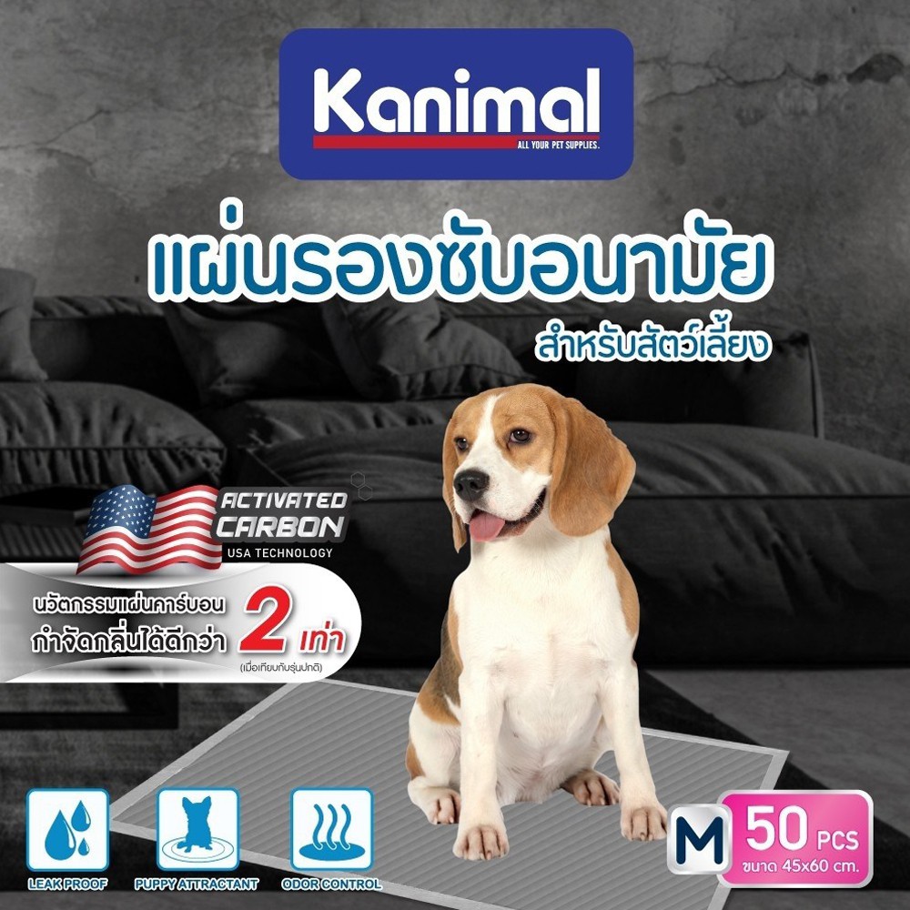 (45x60cm 50แผ่น) Kanimal Activated Carbon Pad แผ่นรองฉี่สัตว์เลี้ยง สูตรคาร์บอน (Size M)