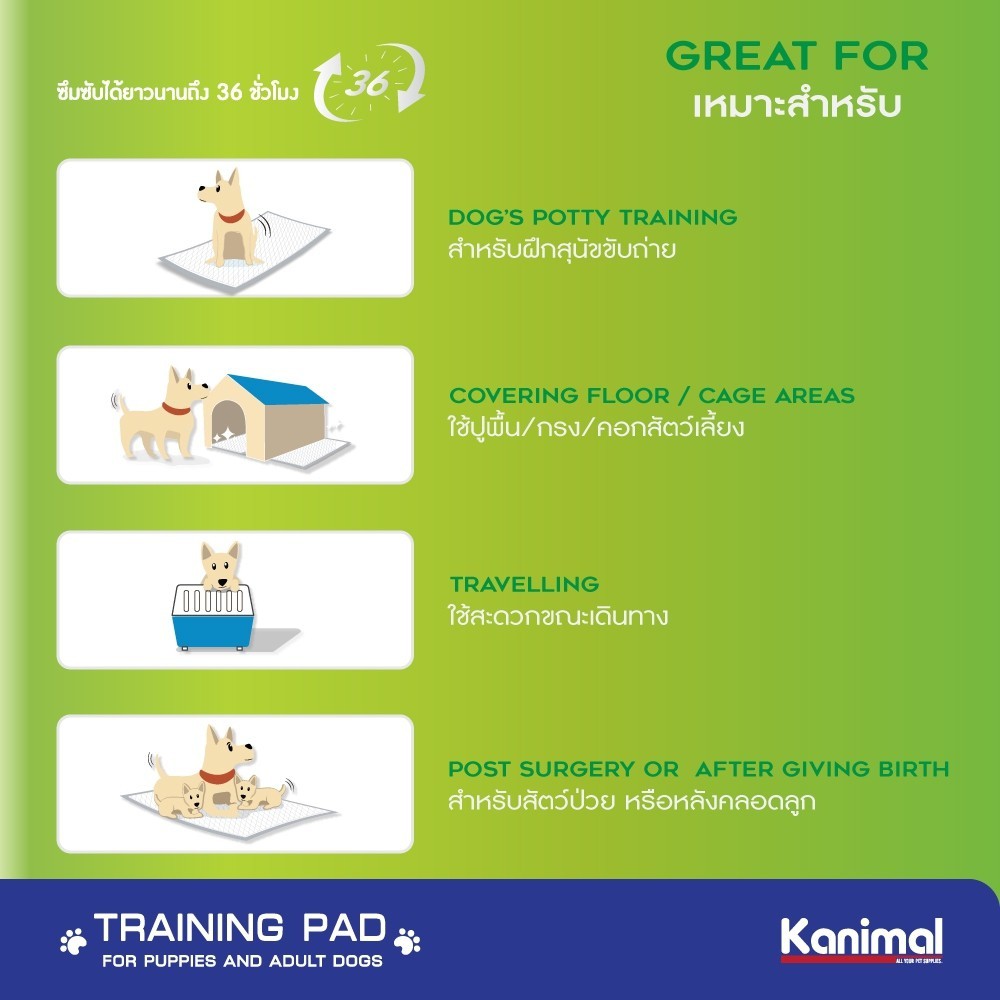 (60x90cm 20แผ่น) Kanimal Activated Carbon Pad แผ่นรองฉี่สัตว์เลี้ยง สูตรคาร์บอน (Size L)