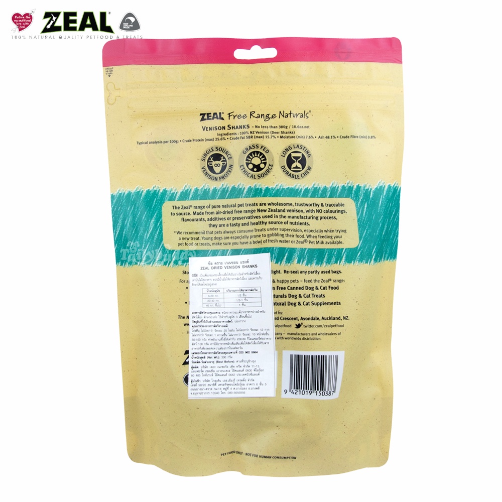 ZEAL Venison Shanks (กวาง) น่องกวางนิวซีแลนด์ แคลเซียมสูง ขัดฟัน ทำความสะอาดเหงือก ขนมสุนัขแทะได้นาน (300g)
