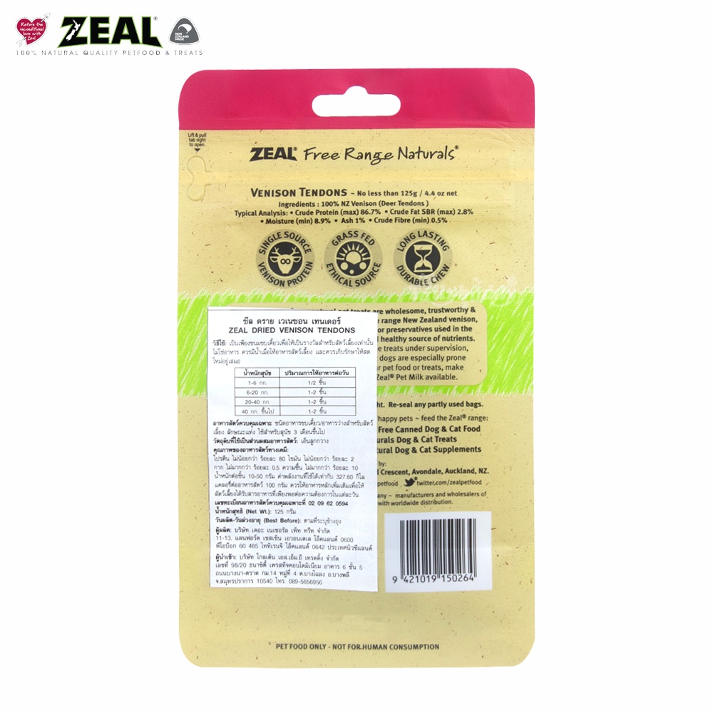 ZEAL Venison Tendons (กวาง) เอ็นลูกกวางนิวซีแลนด์อบแห้ง ช่วยเพิ่มน้ำมันไขข้อ เคี้ยวได้นาน สำหรับสุนัข (125g)