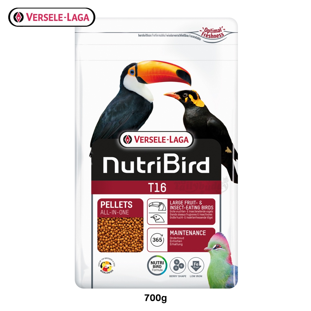 Nutribird T16 (BEO เดิม) อาหารอัดเม็ดสำหรับนกตระกูลขุนทอง นกเอี้ยง กินผลไม้และแมลง (700g)