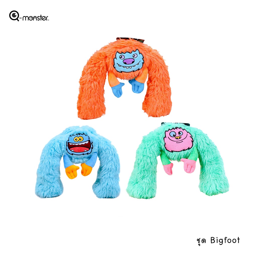 Q-monster Bigfoot ตุ๊กตาของเล่นสุนัขขนาดกลาง-ใหญ่ ชุดเจ้าตีนโต ขนฟูนุ่มกัดมันส์ ตรงกลางเป็นลูกบอลมีเสียง