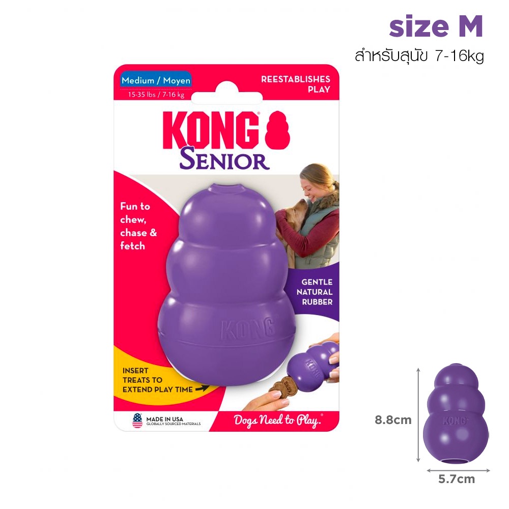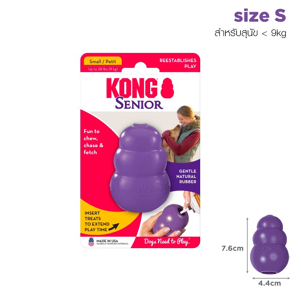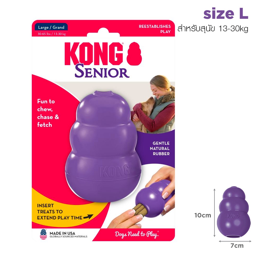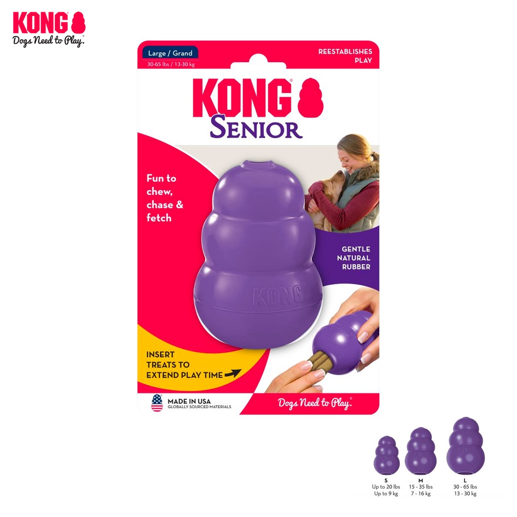 KONG Senior ของเล่น ยางกลมกัดเล่นสำหรับ หมาแก่ สุนัขสูงวัย แกนกลางมีรูซ่อนขนมได้ ยางสีม่วงทนทาน ไม่แข็งจนเกินไป