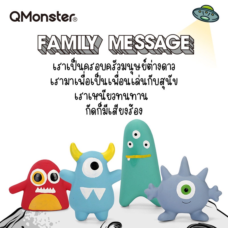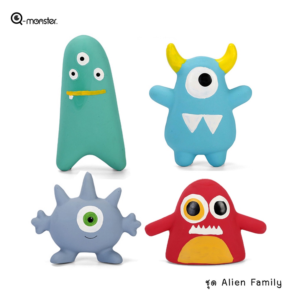 Q-monster Alien Family ของเล่นสุนัข ชุดครอบครัวเอเลี่ยน ทำจากยางพารา กัดมันส์ เคี้ยวเพลิน มีเสียงร้องเวลากัด ทนทาน