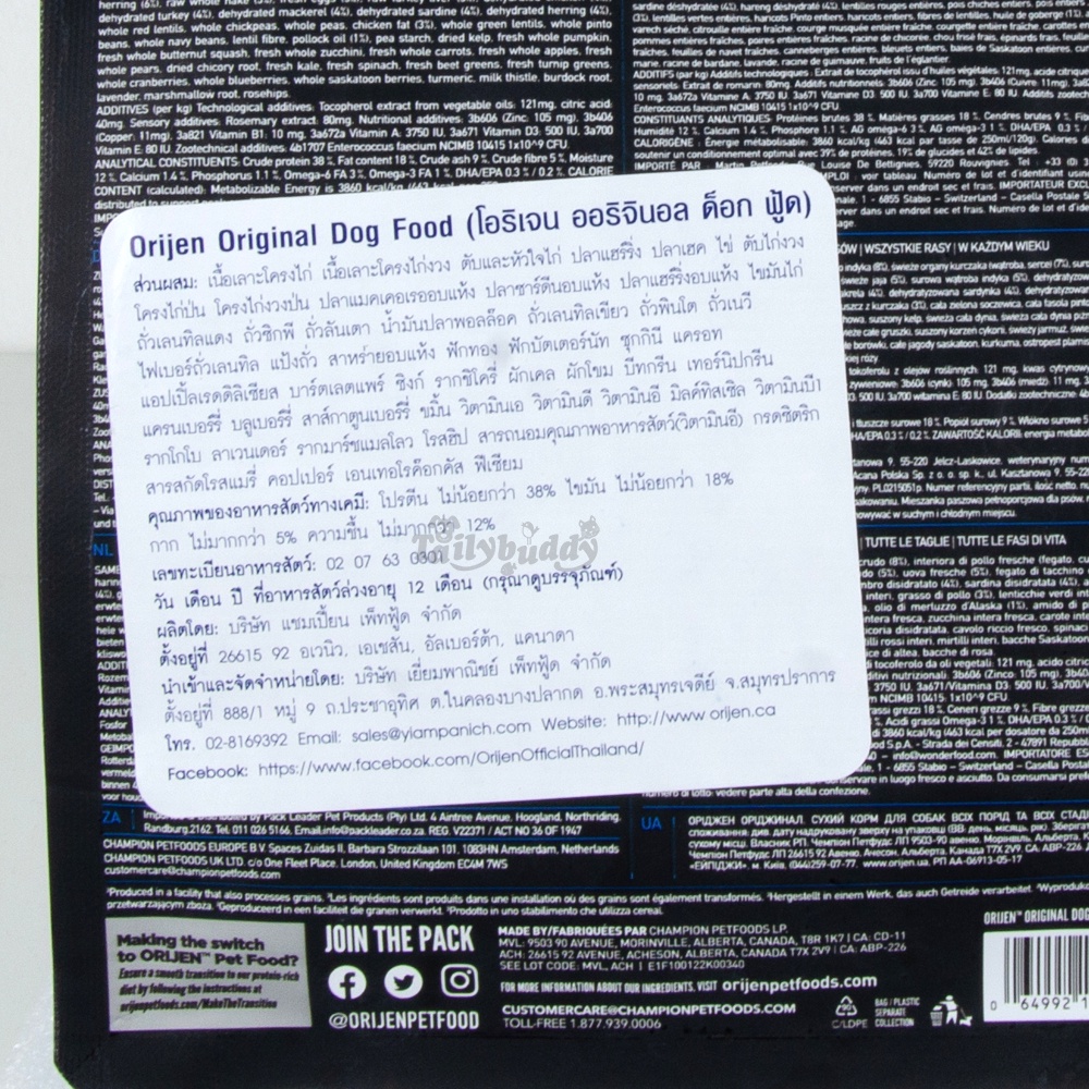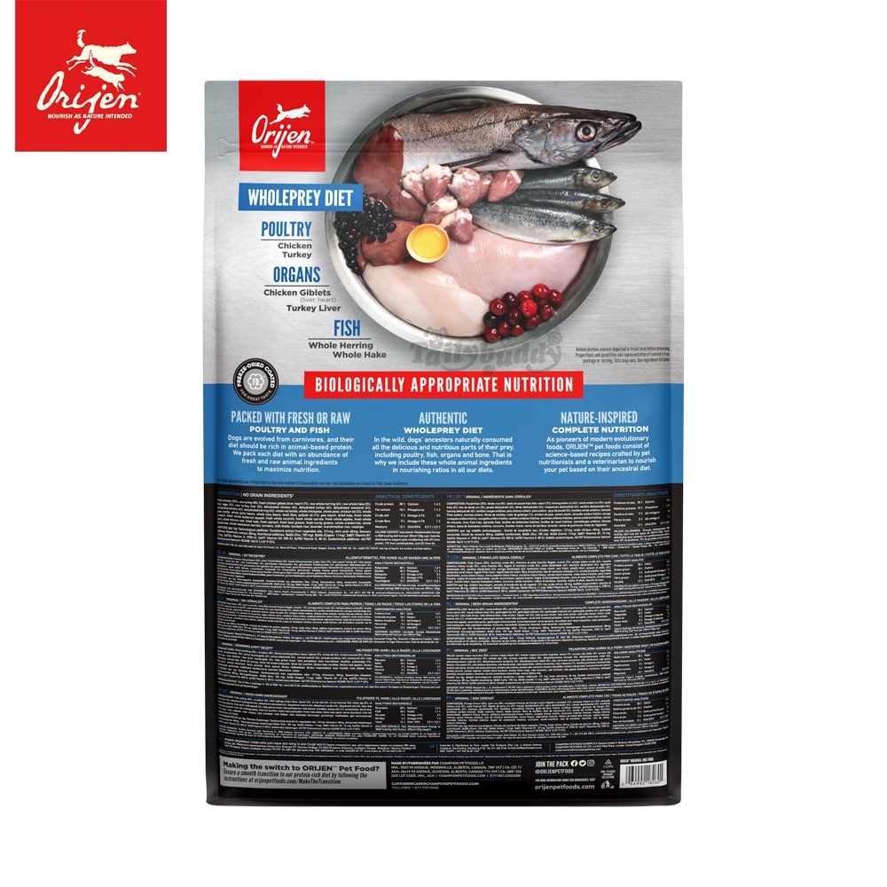 Orijen Original Dog โอริเจน อาหารเม็ดสุนัขระดับรางวัลชนะเลิศ สูตรสุนัขโต โฮลิสติก (6kg,11.4kg)