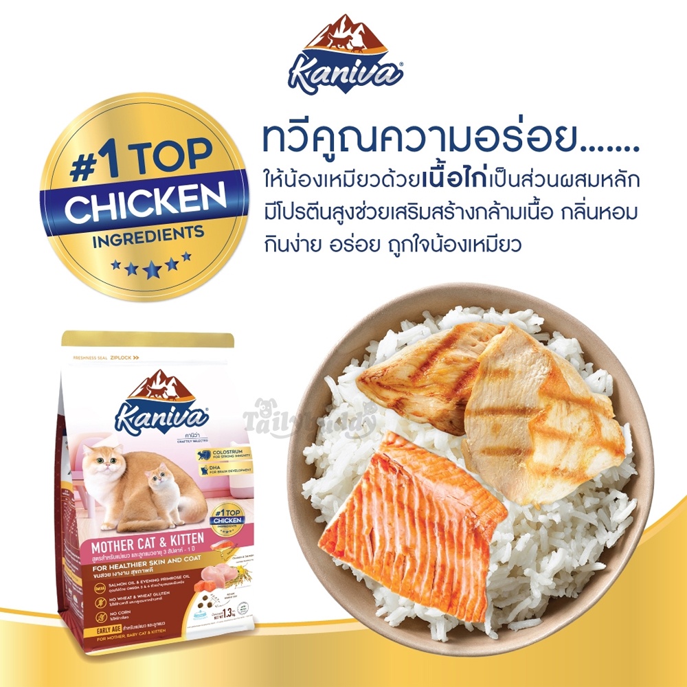 Kaniva Mother Cat & Kitten (สูตรเนื้อไก่ ปลาแซลมอน และข้าว) สำหรับแม่แมว และลูกแมวอายุ 3 สัปดาห์ - 1 ปี (8kg)