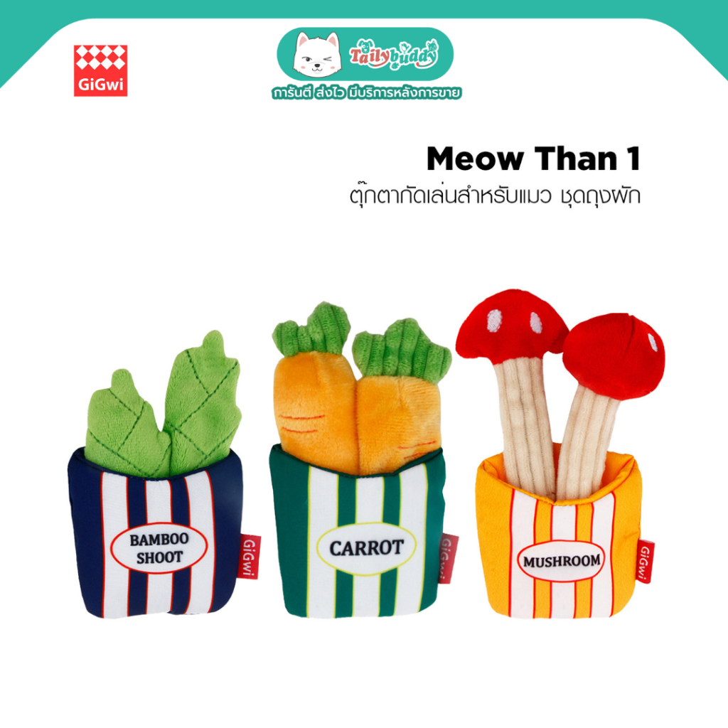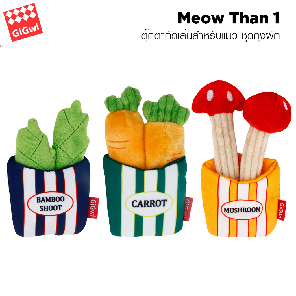 Gigwi Meow Than 1 ของเล่นตุ๊กตาชุดผัก สำหรับแมว ออกแบบเป็นถุง ถอดแยกชิ้นส่วนได้ ให้แมวกัดเล่น ฝึกทักษะ