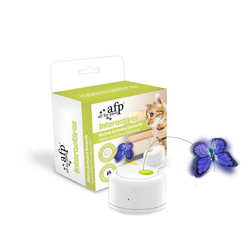 AFP Interactive Butterfly Cat Toy - ผีเสื้อโบยบิน ของเล่นแมวอัตโนมัติ ตัวเครื่องมีเซนเซอร ์ ผีเสื้อหมุนเมื่อแมวเข้าใกล้
