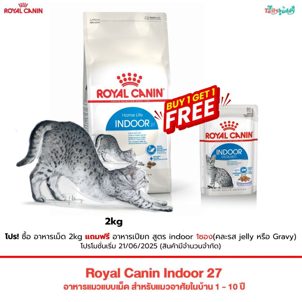 (กรุณาเช็คน้ำหนักที่ต้องการก่อนสั่งซื้อ) (2kg, 4kg) Royal Canin Indoor 27 อาหารแมวแบบเม็ด สำหรับแมวอาศัยในบ้าน 1 - 10 ปี