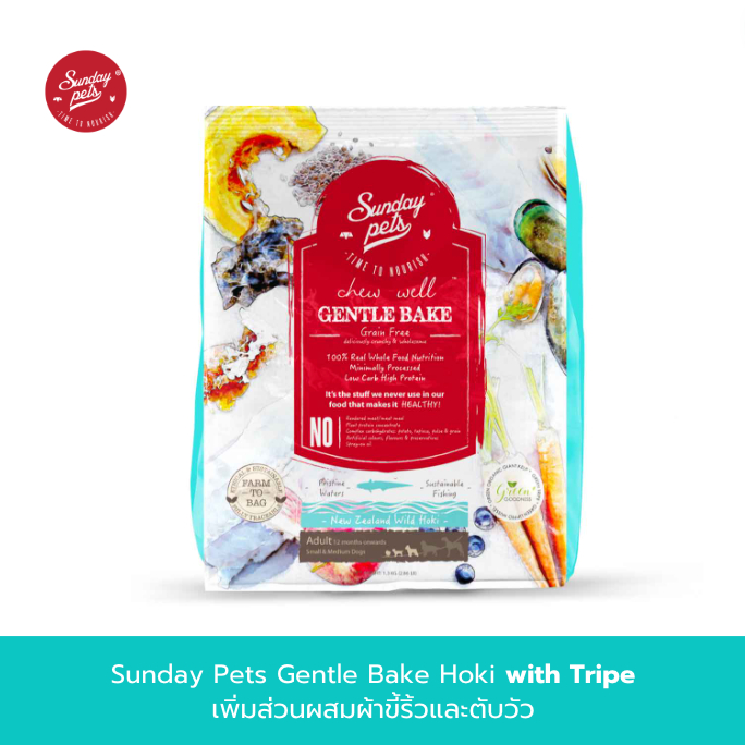 Sunday Pets Gentle Bake Hoki with Tripe Small & Medium Adult Dogs อาหารสุนัข สูตรปลาโฮกิ (1.3kg)