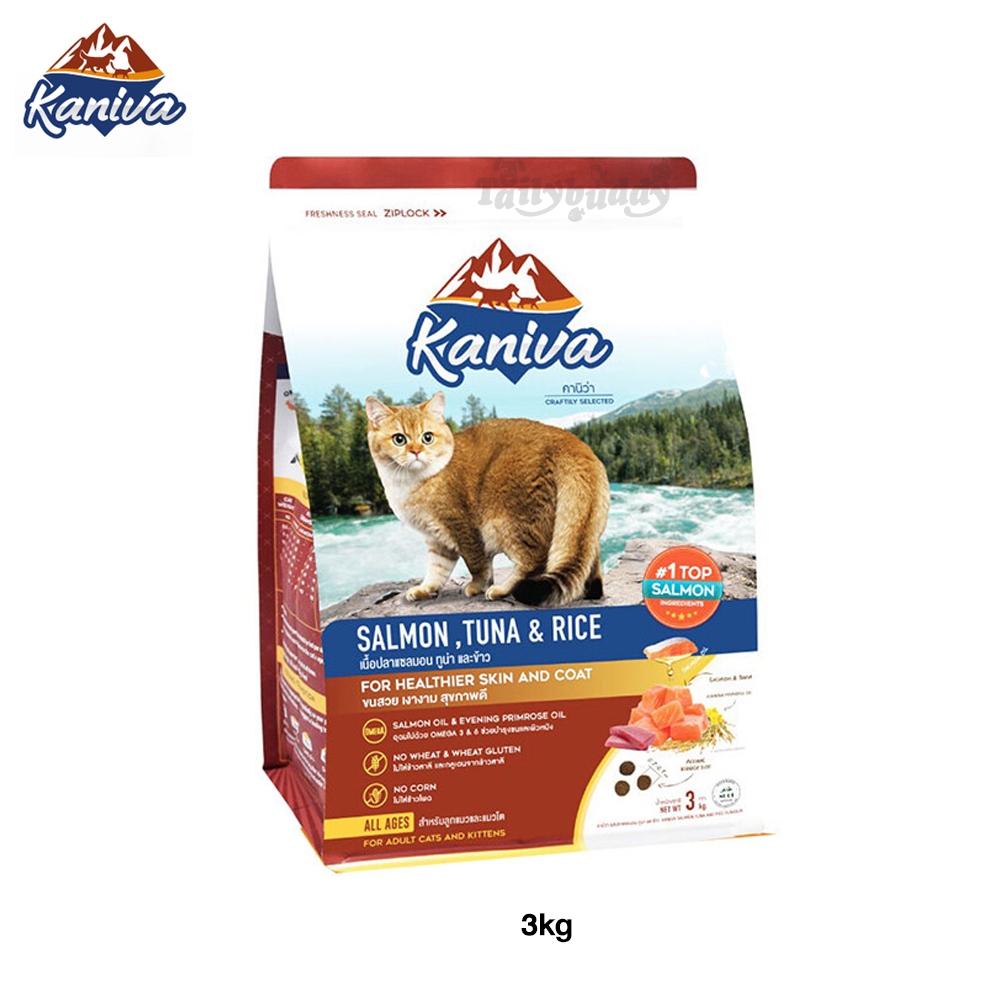 Kaniva Cat อาหารแมวสูตรเนื้อปลาแซลมอน ทูน่า และข้าว บำรุงผิวหนังและขน สำหรับลูกแมว และแมวโต (3kg.,9kg)
