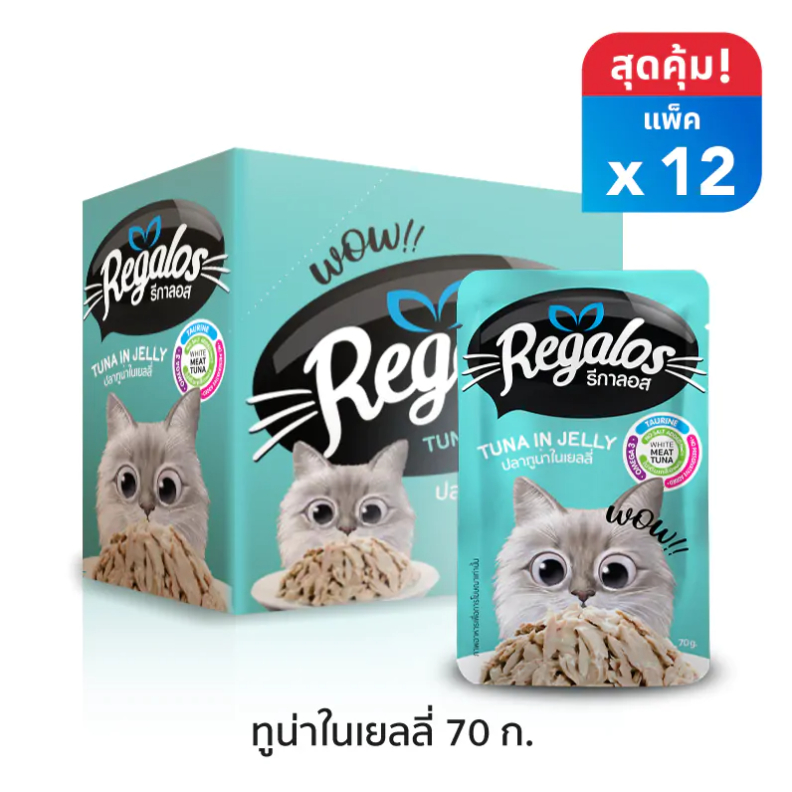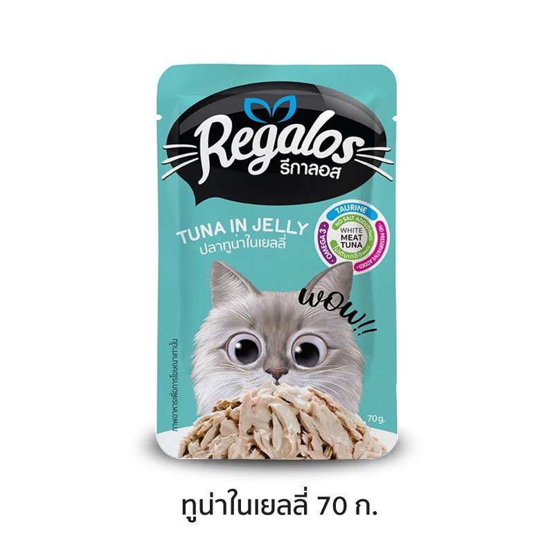Regalos Tuna in Jelly รีกาลอส อาหารแมวแบบเปียก ปลาทูน่าในเยลลี่ สำหรับแมวอายุ 1 ปีขึ้นไป (70g)