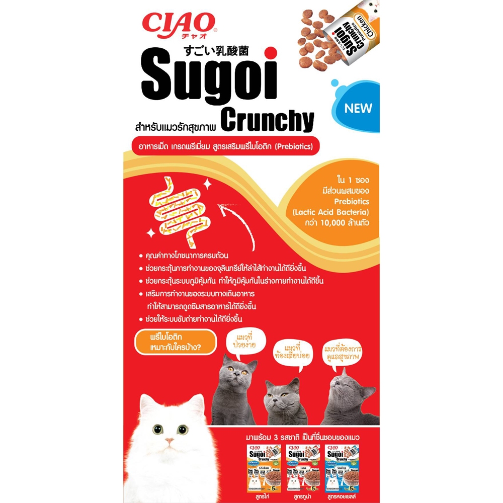 CIAO Sugoi เชาว์ สุโก้ย ครันชี่ (รสปลาทูน่า) พลัส พรีไบโอติกส์ อาหารแมวเสริมจุลินทรีย์ช่วยย่อย