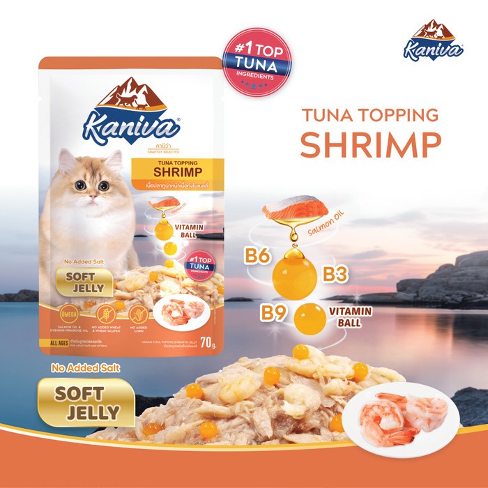 1โหล (12 ซอง) - Kaniva คานิว่า อาหารเปียกแมว เนื้อปลาทูน่าเน้นๆ ในเยลลี่ ไม่เติมเกลือ (Jelly) (แบบซอง) (70g)