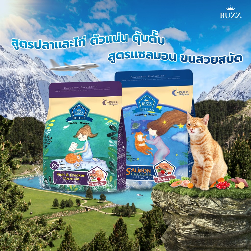 Buzz Netura บัซซ์ Cat & Kitten Holistic อาหารเม็ดแมว สูตรเนื้อปลาและไก่ สำหรับแมวทุกช่วงวัย ย่อยง่าย ช่วยลดกลิ่นมูล