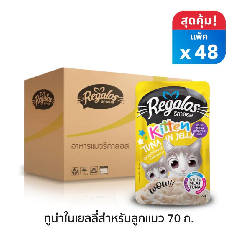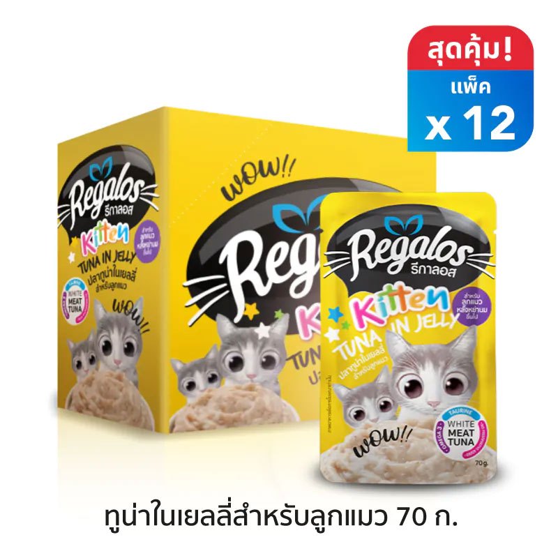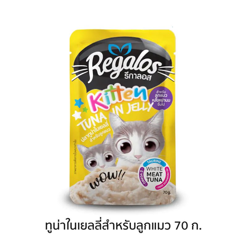 Regalos Kitten Tuna in Jelly รีกาลอส อาหารลูกแมวแบบเปียก ปลาทูน่าในเยลลี่สำหรับลูกแมวหลังหย่านมขึ้นไป (70g)