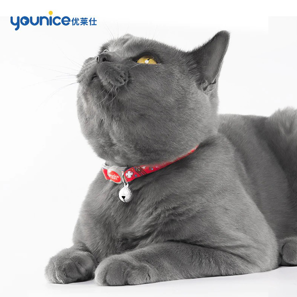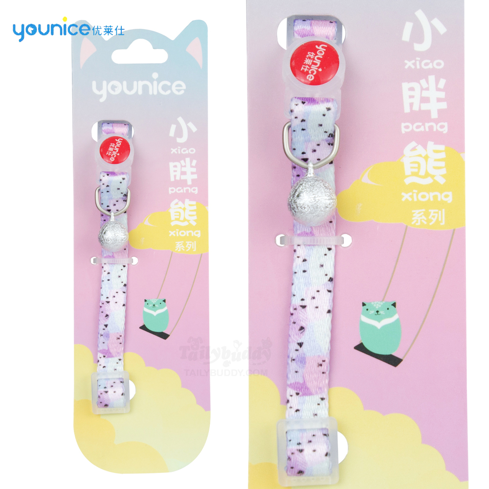 younice ปลอกคอแมวลายหน้าแมวน่ารัก โทนพาสเทล กระดิ่งสีเทา