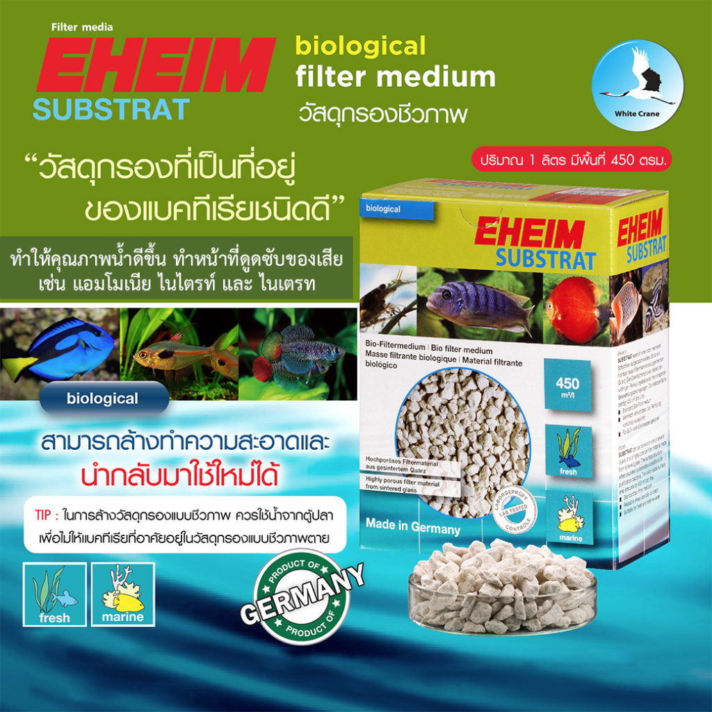 EHEIM Substrat ซับสเตรท วัสดุกรองชีวภาพ เป็นที่อยู่แบคทีเรีย ดูดซับแอมโมเนีย ไนไตรท์ และไนเตรท (1ลิตร, 2ลิตร, 5ลิตร)