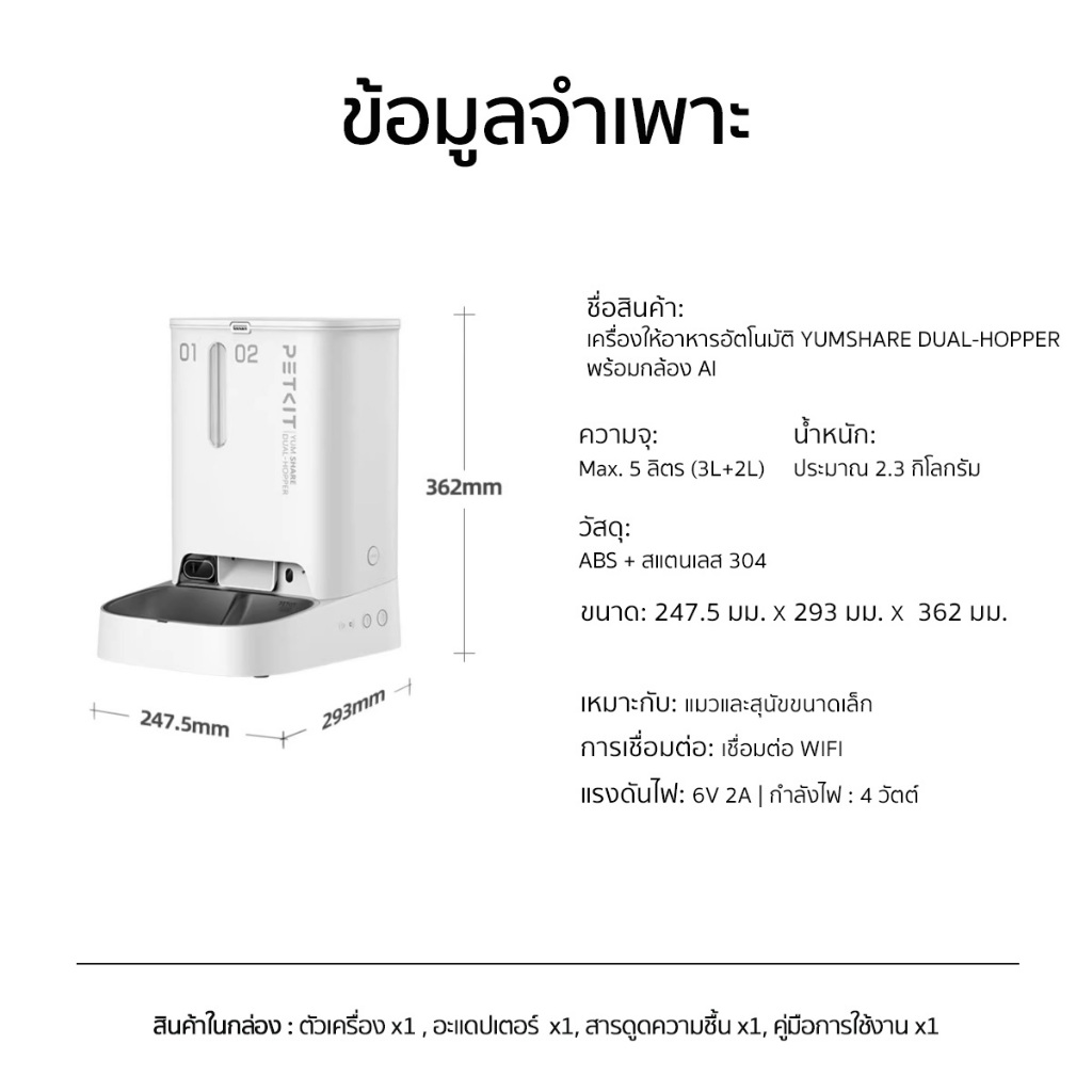 PETKIT YumShare Dual-Hopper with Camera เครื่องให้อาหารสัตว์เลี้ยงอัจฉริยะพร้อมกล้อง AI เชื่อมต่อผ่านมือถือดูกล้องได้ 5L