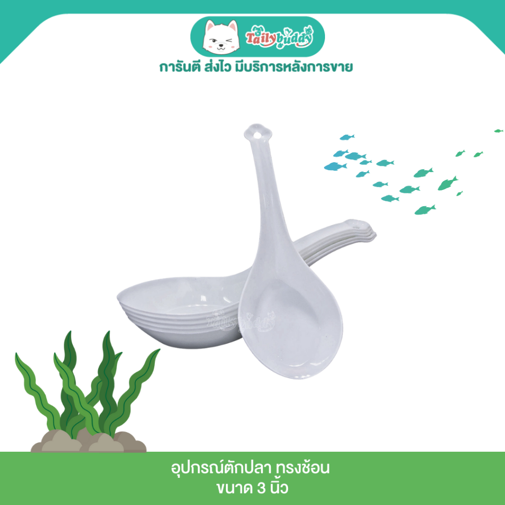 อุปกรณ์ตักปลา ทรงช้อน พลาสติกสีขาว ขนาด 3 นิ้ว