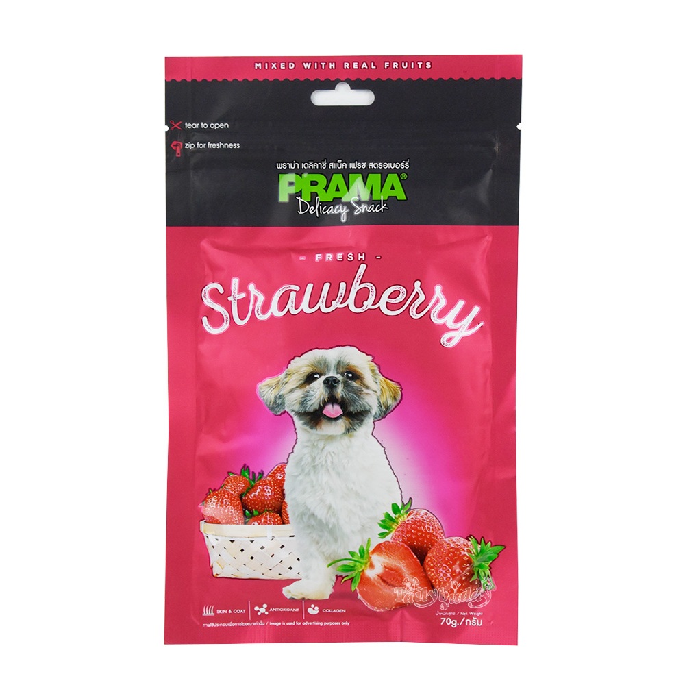 PRAMA Strawberry ขนมสุนัขผสมเนื้อผลไม้จริง รสสตรอเบอรี่ บำรุงขน+ต้านอนุมูลอิสระ+คอลลาเจน (70g)