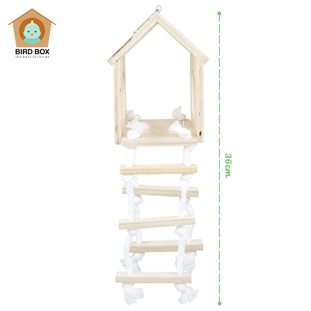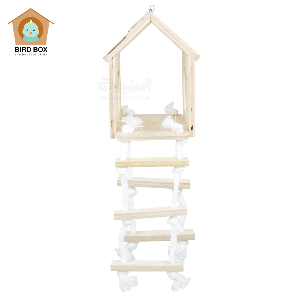 Bird Box บ้านไม้เปิดโล่ง มีบันไดเชือกห้อย สำหรับนก กระรอก ชูการ์ไกลเดอร์ หนูแฮมสเตอร์ไจแอ้นท์ (10x10x14cm)