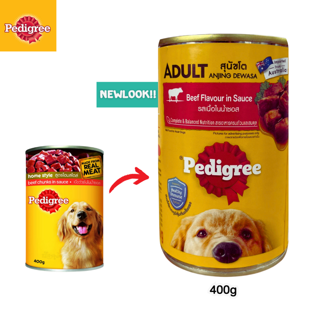Pedigree อาหารเปียกสุนัขแบบกระป๋อง รสเนื้อวัวชิ้นในน้ำซอส (400g)