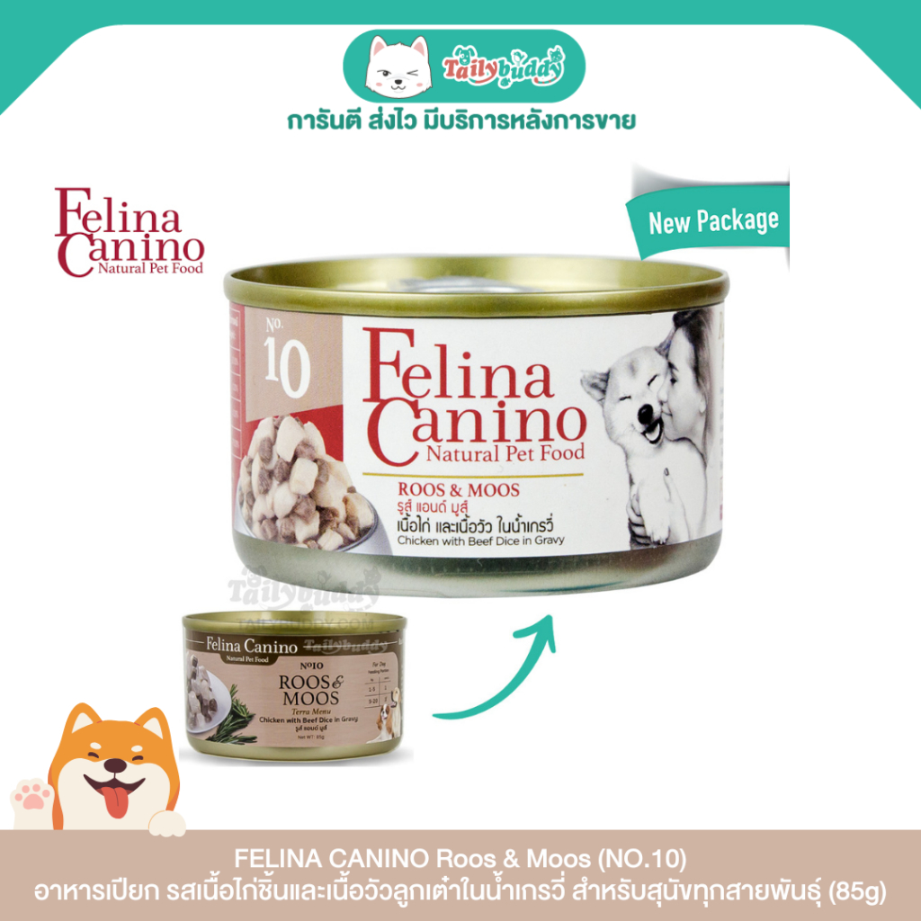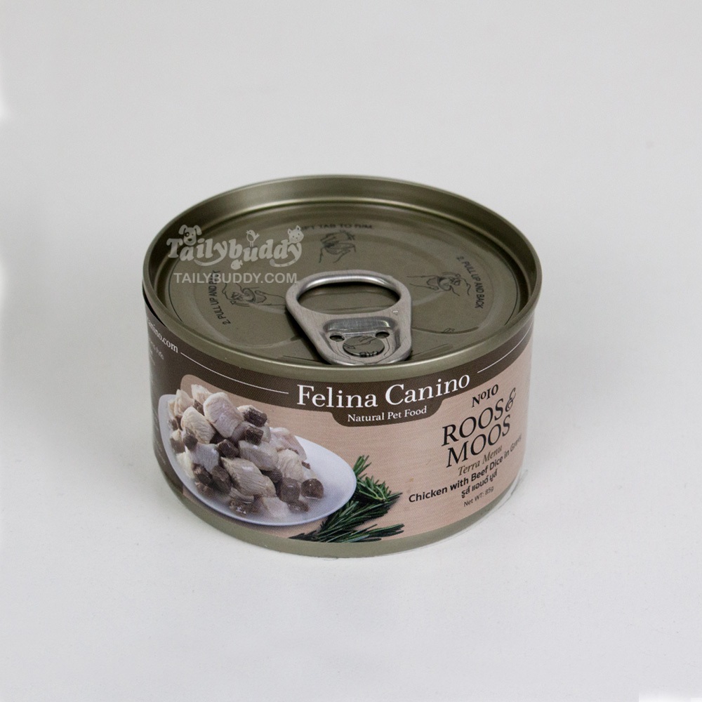 (NO.10) Felina Canino Roos & Moos อาหารเปียกสำหรับสุนัข รสเนื้อไก่ชิ้นและเนื้อวัวลูกเต๋าในน้ำเกรวี่ (85g)