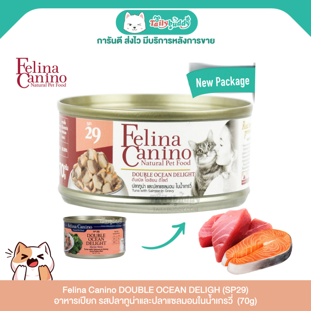 (NO.29) Felina Canino DOUBLE OCEAN DELIGH อาหารเปียกสำหรับแมว รสปลาทูน่าและปลาแซลมอนในน้ำเกรวี่ (70g)