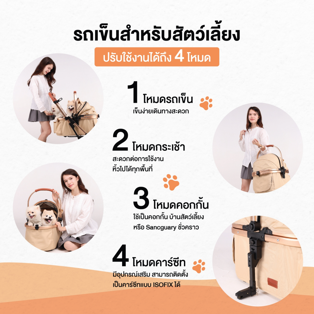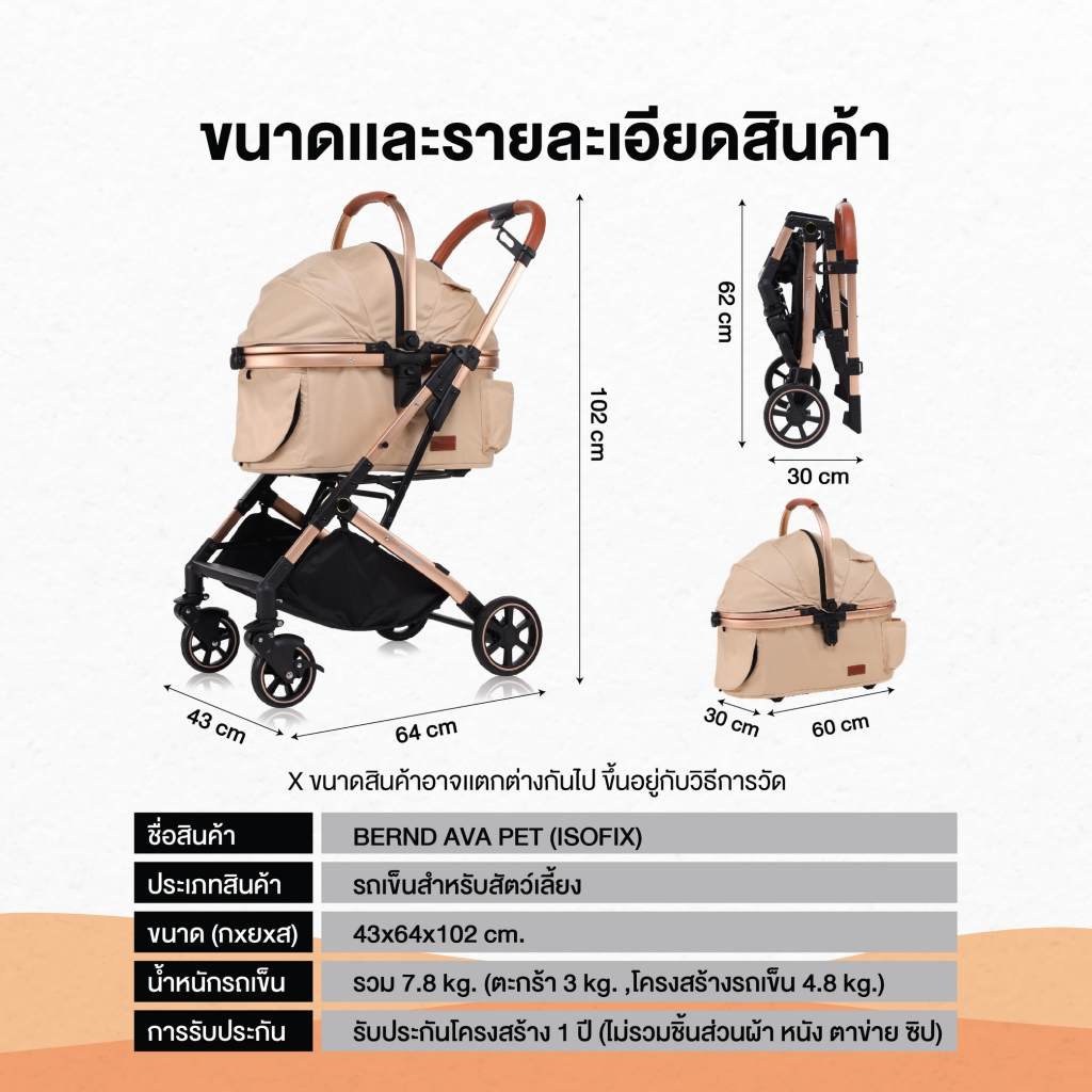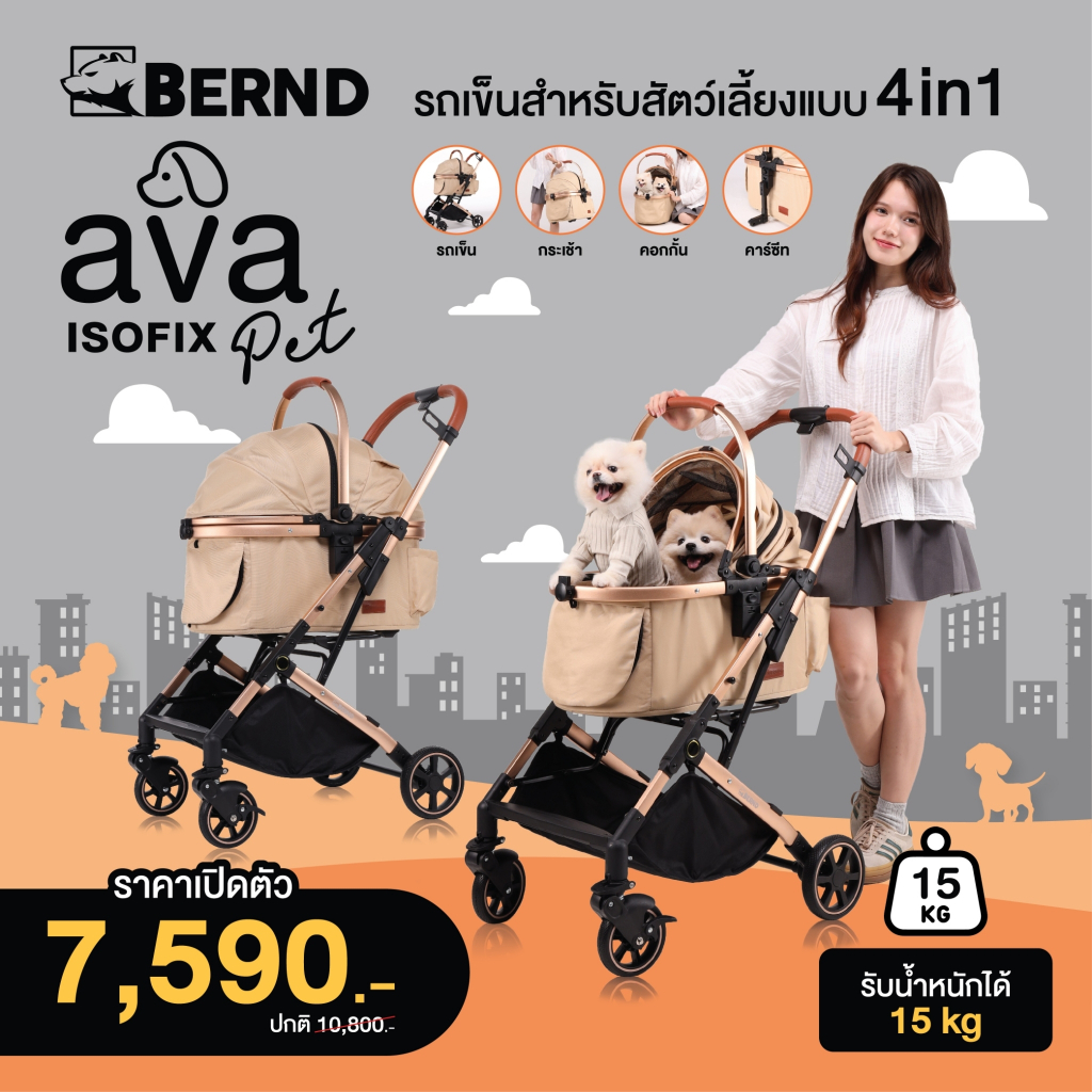 พร้อมส่ง ! Bernd AVA Pet (Isofix) รถเข็นสัตว์เลี้ยงเเบบ 4 in 1 เป็นได้ทั้ง รถเข็น กระเป๋า คอกกั้น และคาร์ซีท รองรับ 15kg
