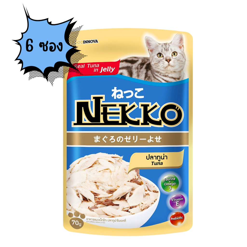 (1ซอง, 6ซอง) NEKKO CAT Tuna อาหารเปียกแมว สูตรปลาทูน่าในเยลลี่ (70g)