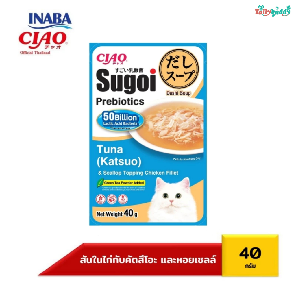 CIAO SUGOI DASHI SOUP POUCH PLUS PREBIOTICS ซุปใสผสมเนื้อไก่ เสริมพรีไบโอติกส์ หอมปลาแห้ง ซุปใสสไตล์ญี่ปุ่น (40g)