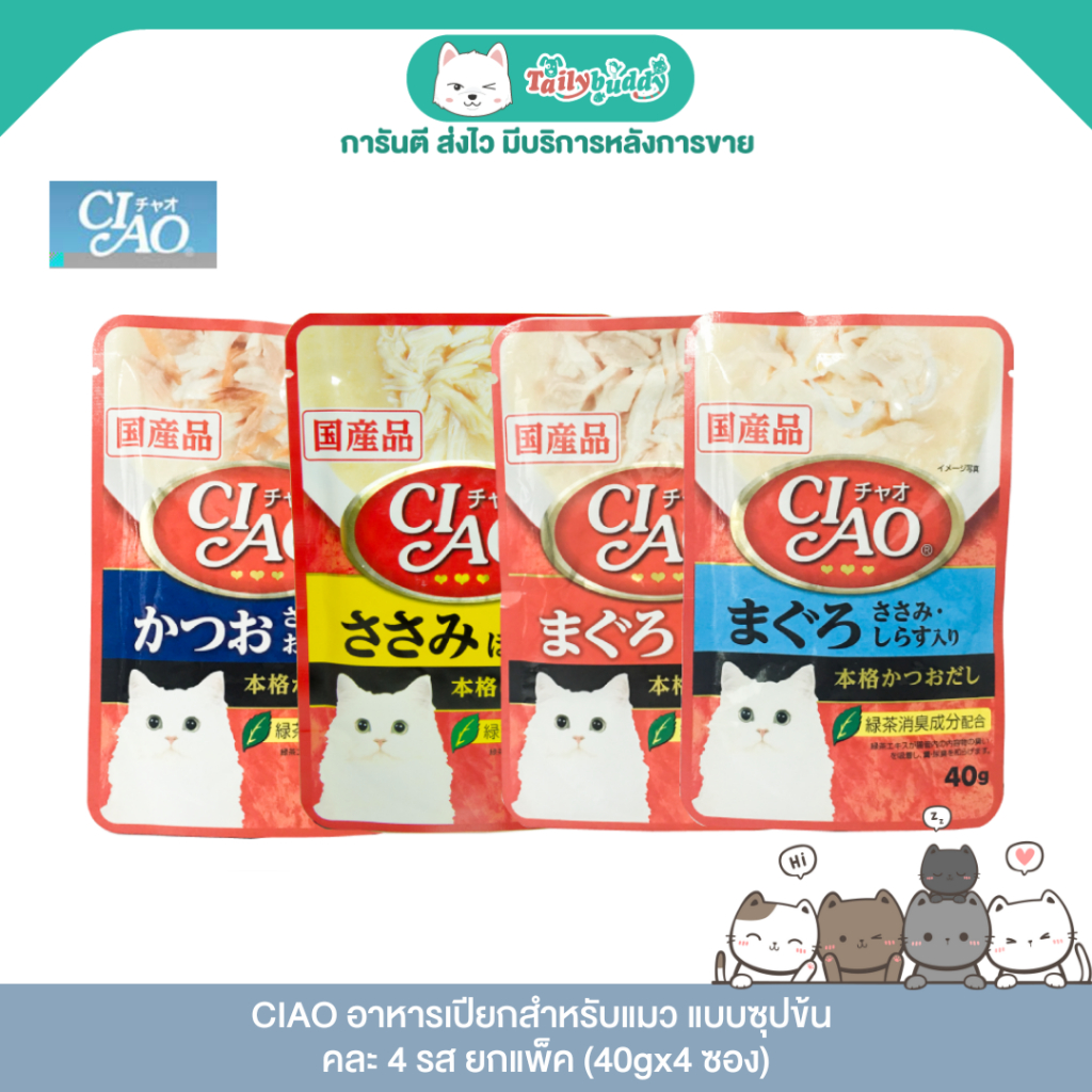 CIAO อาหารเปียกสำหรับแมว แบบซุปข้น คละ 4 รส ยกแพ็ค (40gx4 ซอง)