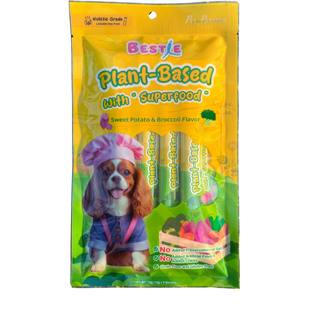 Bestie ขนมหมาเลีย Plant-Based รสมันหวานและบล็อคโคลี่ แคลต่ำ ไม่มีเนื้อสัตว์ (75g) (15gx5ซอง)