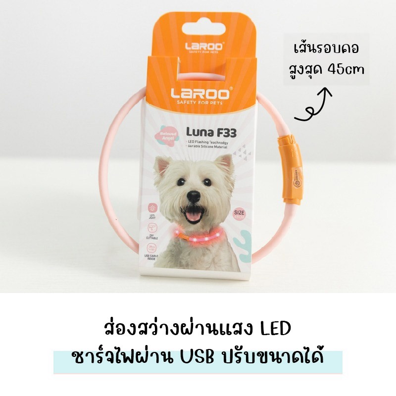 LaRoo LED Collar ปลอกคอเรืองแสงด้วยไฟ LED ชาร์จ USB ช่วยปกป้องอันตรายยามค่ำคืน ใช้ได้ทั้งสุนัขและแมว