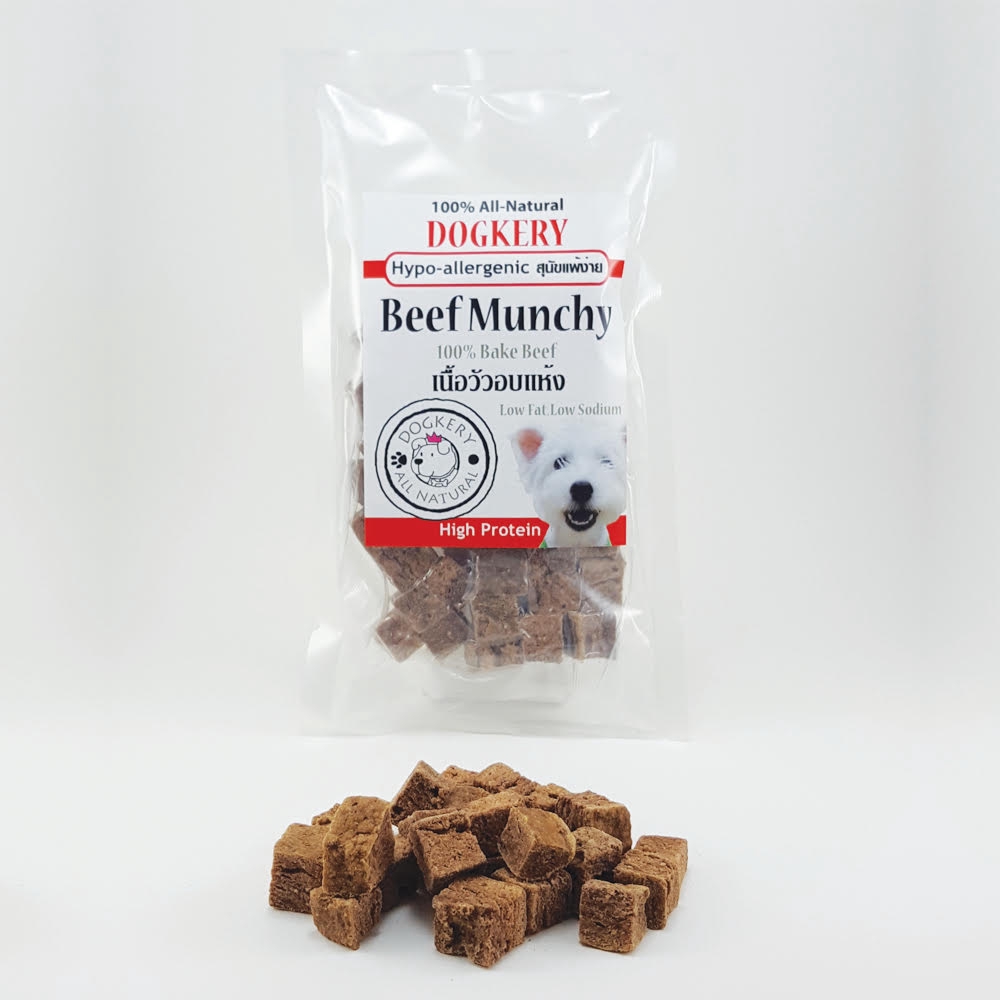DOGKERY OVEN DRIED Beef Munchy เนื้อวัวอบแห้ง ขนมสำหรับสุนัขภูมิแพ้ และคุมน้ำหนัก (60g)