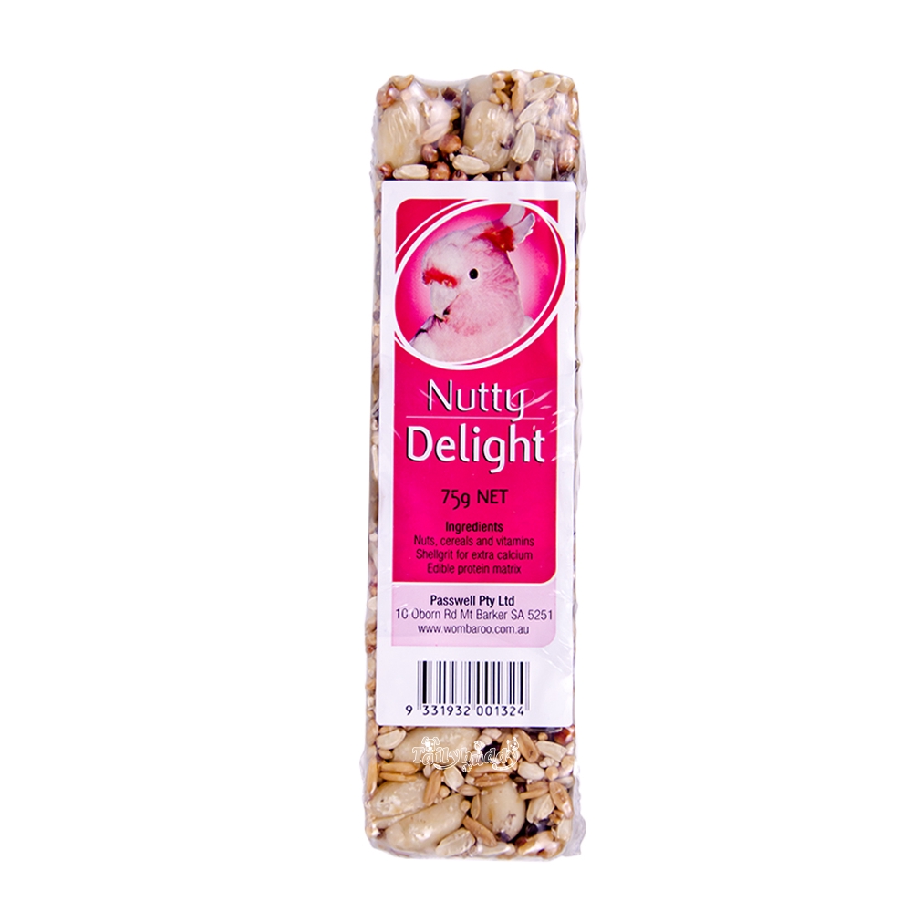 Wombaroo Nutty Delight ขนมนกแก้วขนาดกลาง-ใหญ่ ถั่วผสมธัญพืชรวม เสริมแคลเซียม แบบแท่ง มีลวดแขวนกรง (75g)
