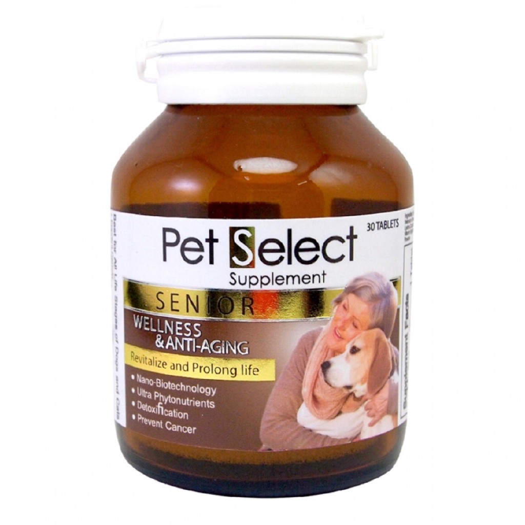 Pet Select Senior อาหารเสริมสุนัขหรือแมวแก่ ต่อต้านอนุมูลอิสระ ป้องกันมะเร็ง (30 เม็ด)