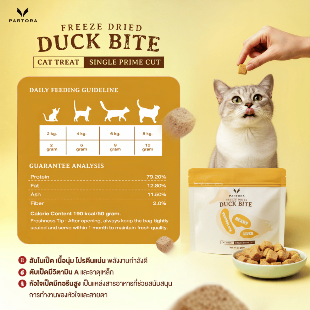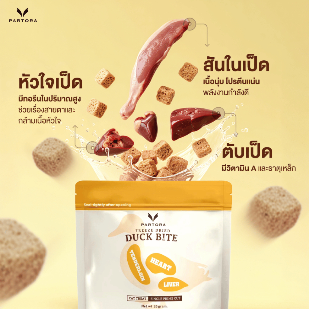 PARTORA Freeze Dried DUCK BITE ฟรีซดรายดั๊กไบท์ ขนมฟรีซดรายสำหรับแมวอายุตั้งแต่ 3 เดือนข้ึนไป (35g)