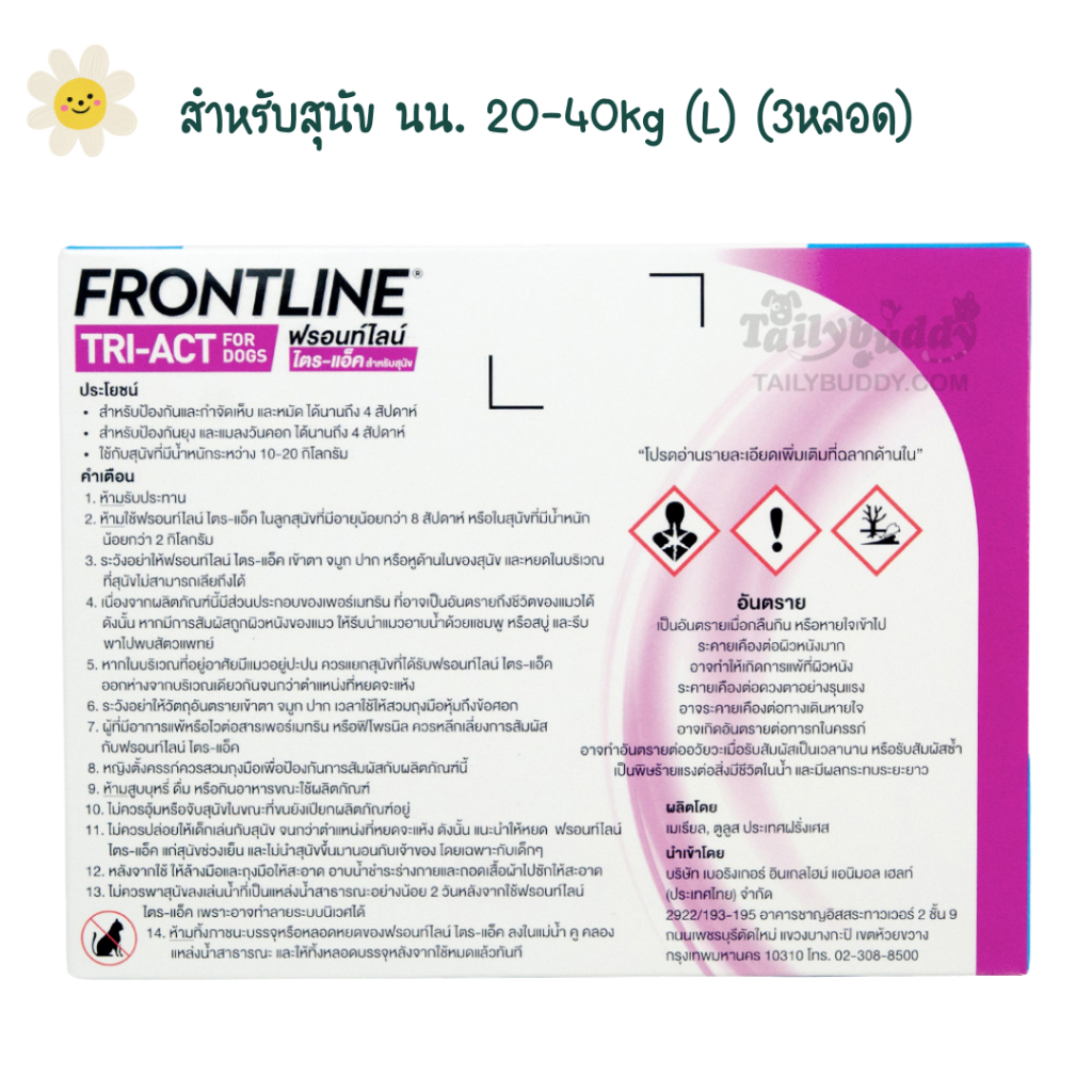 FRONTLINE TRI-ACT สำหรับสุนัข หยดตรงจุด หยุด ยุง เห็บ หมัด นน. 10-20kg (M) (3หลอด)