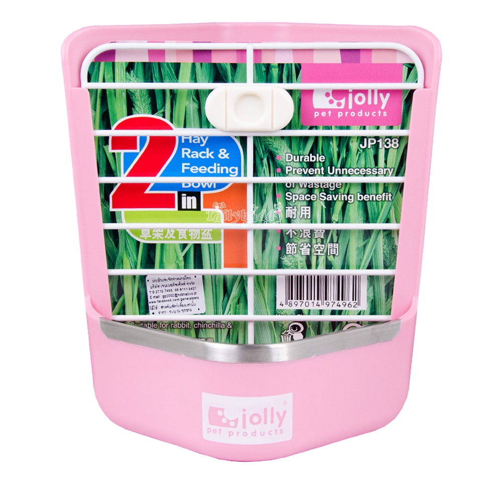 Jolly ที่ใส่อาหาร + รางหญ้า 2 in 1 แบบล็อคติดกรง (สีชมพู) (JP138)