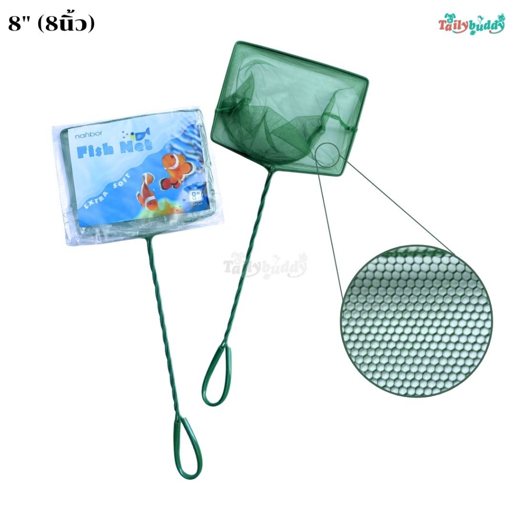 กระชอนตักปลา ใช้ได้ทั้งน้ำจืด และน้ำทะเล ปลายด้ามเป็นห่วงแขวน มีให้เลือก 2 ขนาด (8นิ้ว, 10นิ้ว)