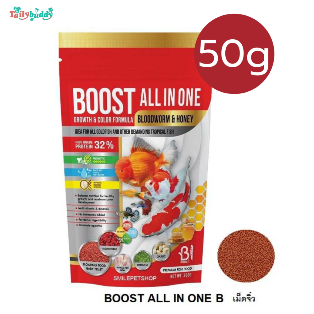 BOOST ALL IN ONE Bloodworm & Honey อาหารปลาผสมหนอนแดงและน้ำผึ้ง (เม็ดลอย) สำหรับปลาหางนกยูง ปลาทอง ปลาคาร์ฟ และปลาสวยงาม