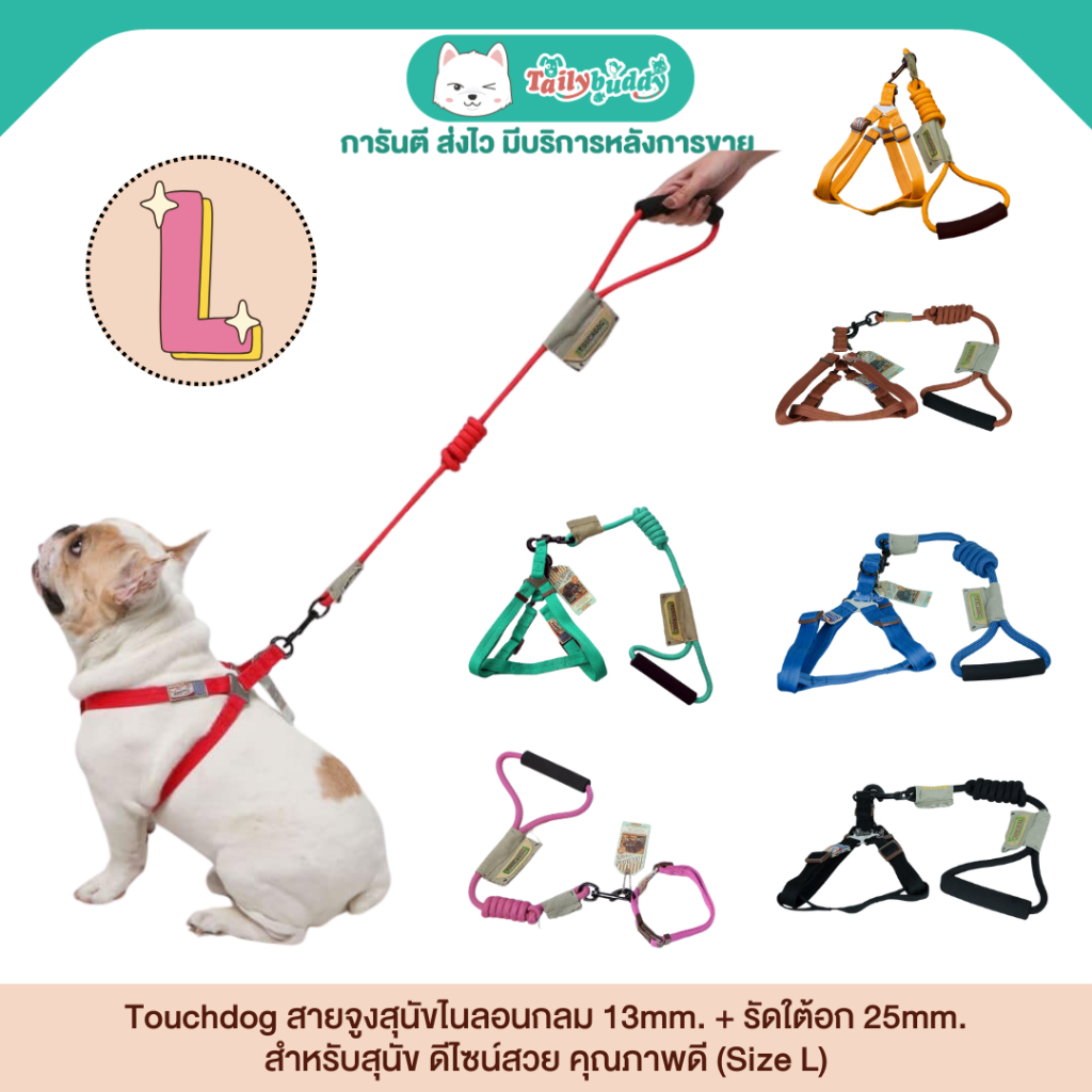 Touchdog สายจูงสุนัขไนลอนกลม 13mm + รัดใต้อก 25mm สำหรับสุนัข ดีไซน์สวย คุณภาพดี (Size L)