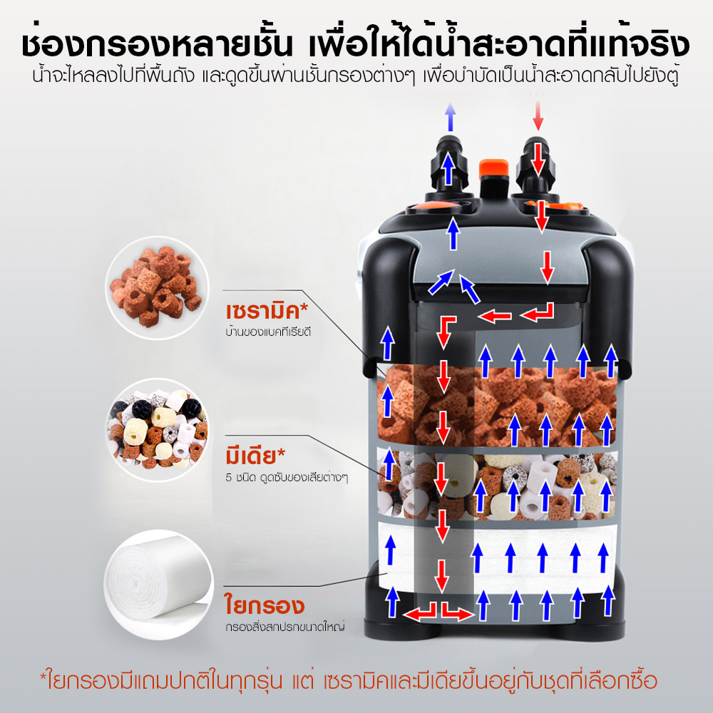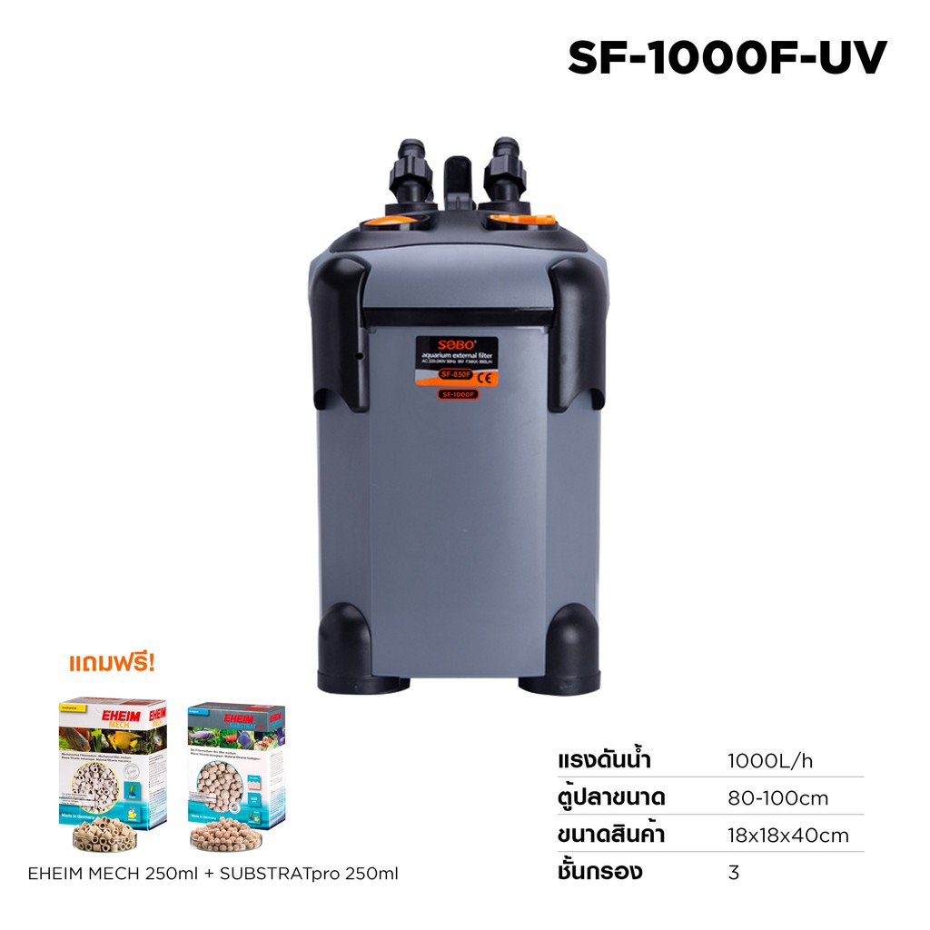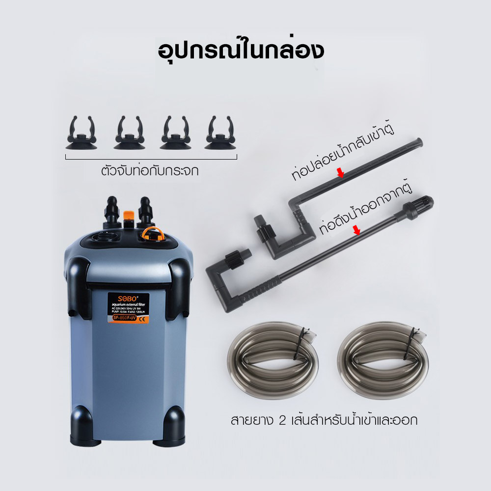 SOBO Canister External Filter ถังกรองนอกพร้อมหลอดยูวี (UV) สำหรับฆ่าเชื้อโรคในตัว และปั๊มในตัว ปรับแต่งชั้นกรองได้