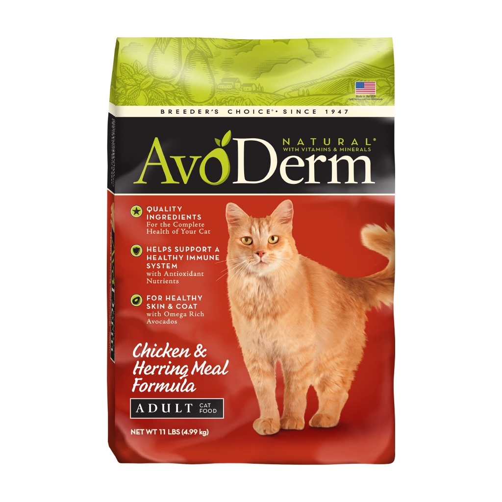 AvoDerm Chicken & Herring Meal อาหารแมวชนิดเม็ด รสเนื้อไก่และเนื้อปลาเฮอร์ริ่ง สำหรับแมวโตทุกสายพันธุ์ สูตรลดขนร่วง
