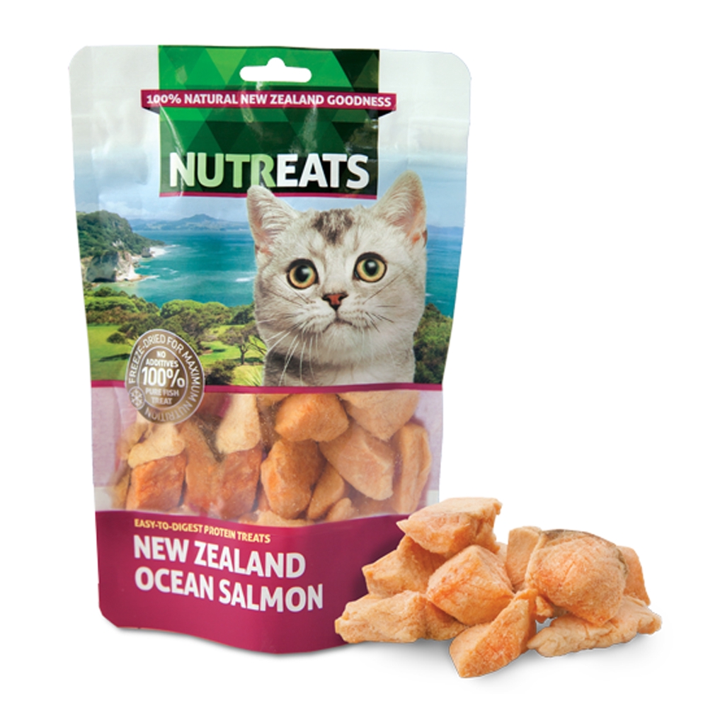 อายุยาว 2026 ! NUTREATS Ocean Salmon นูทรีทส์เนื้อปลาแซลมอน ขนมแมวฟรีซดรายเพื่อสุขภาพ บำรุงขนและกระดูก (50g)