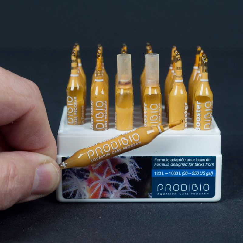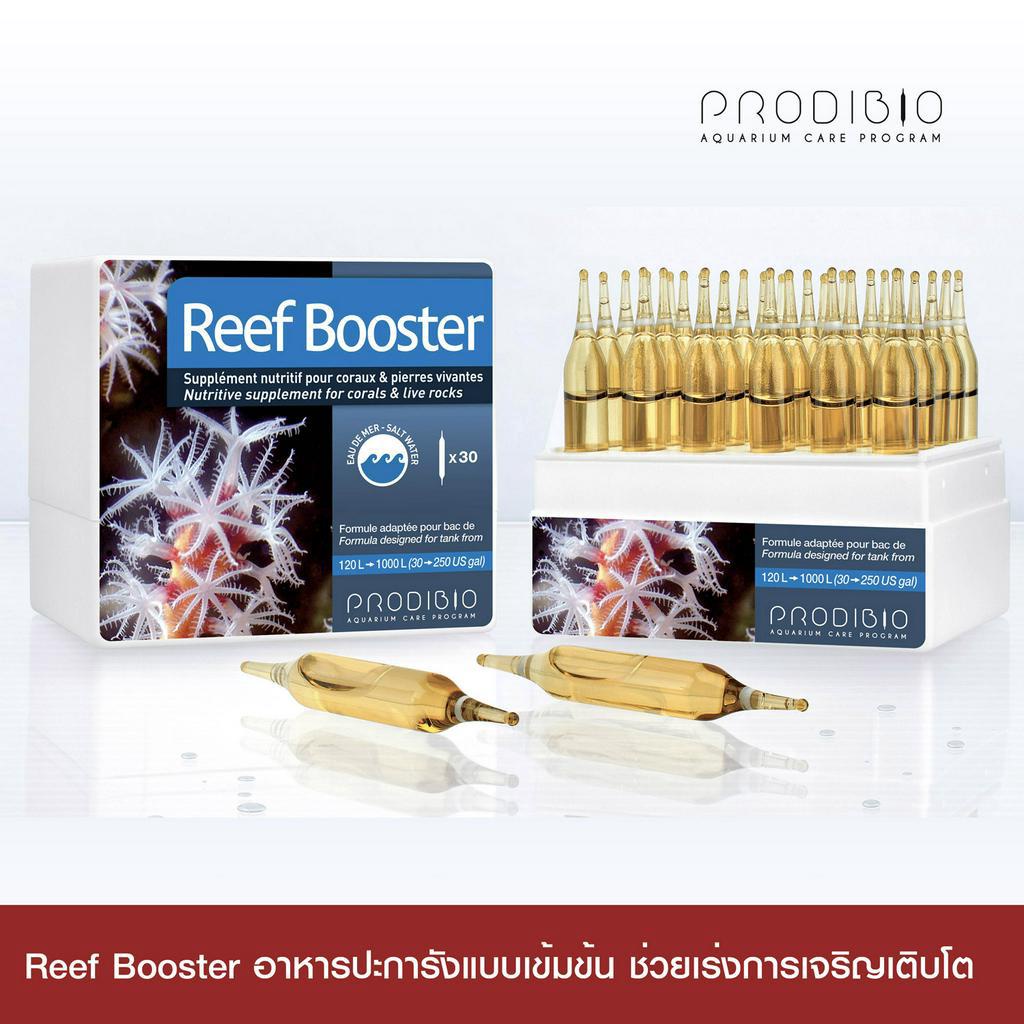 Prodibio Reef Booster, อาหารปะการังและหินเป็น แบบเข้มข้น ช่วยเร่งการเจริญเติบโตของปะการังในตู้ปลาทะเล (1 กล่อง, 30 หลอด)